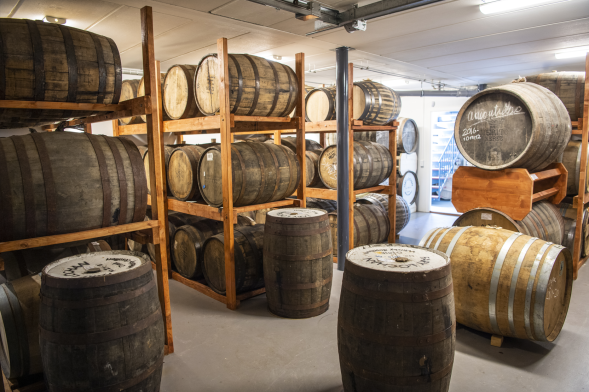 På rundvisningen kommer du blandt andet med ned i de underjordiske gange, hvor fadene ligger side om side, klar til den næste frigivelse.